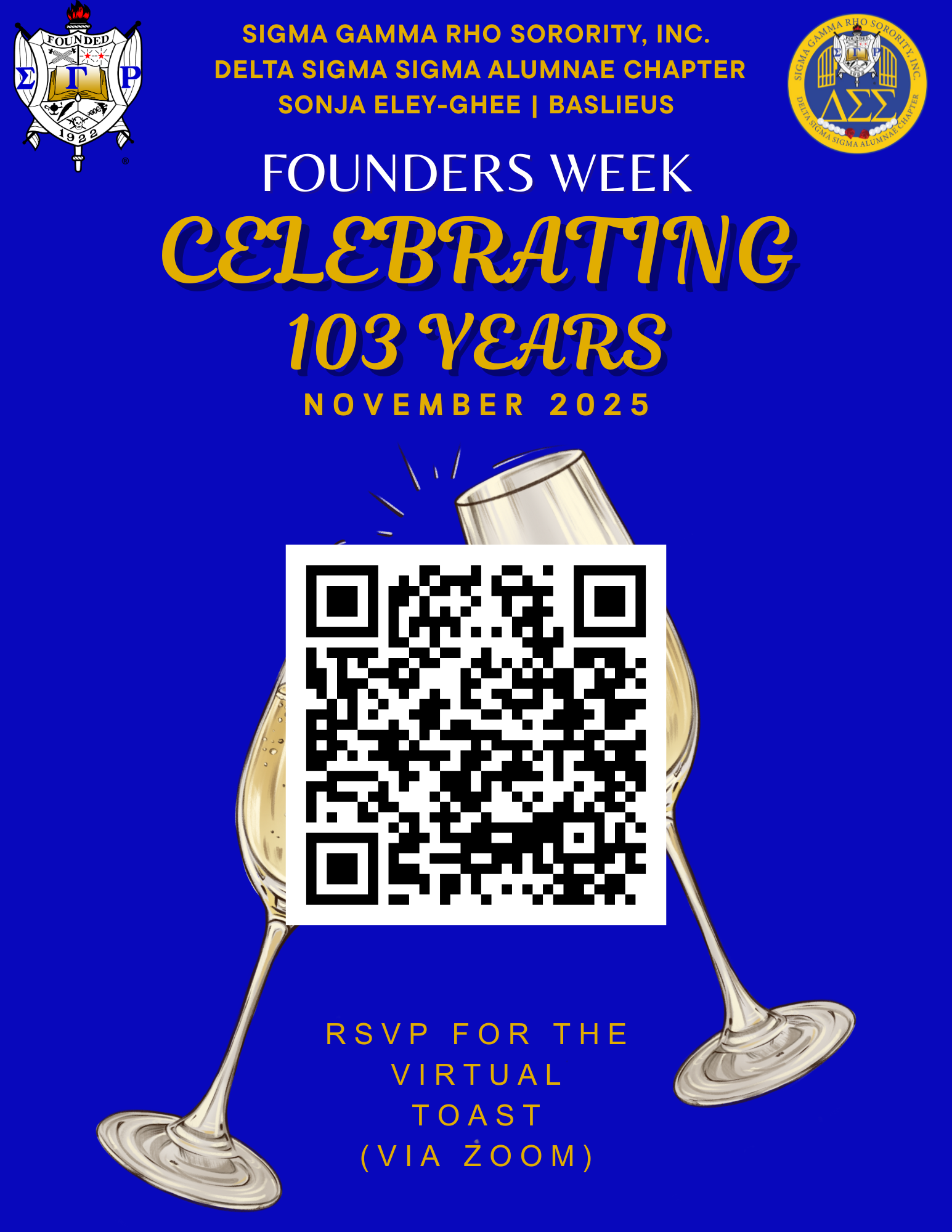 This virtual toast is a special moment to honor our Founders, reflect on our legacy, and celebrate the continued impact of Sigma women across generations.